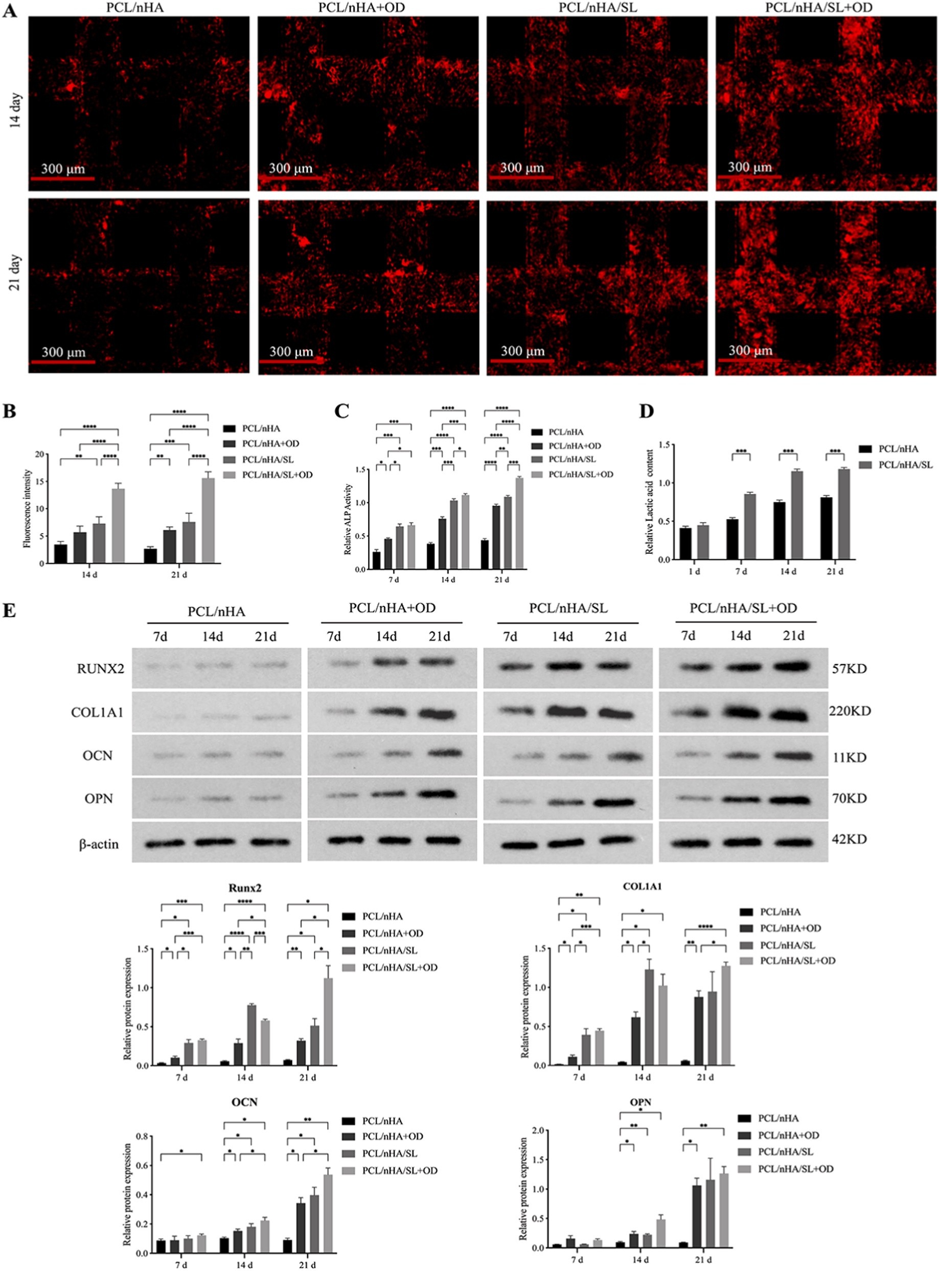 成骨誘導(dǎo)培養(yǎng)基培養(yǎng)14天后,檢測ALP活性、ARS礦化及Western blot(Runx2、COL1A1、OCN、OPN),全程定量乳酸水平。