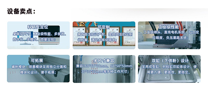 設(shè)備搭載工業(yè)級壓電式噴頭與負壓閉環(huán)墨路系統(tǒng),確保設(shè)備墨水粘度兼容性高、墨滴控制精確,適合科研和小型樣件高精度打印。采用模塊化雙缸體設(shè)計,支持160*60*60mm、50*50*50mm、30*30*30mm等多種尺寸缸體模式,小缸體便于快速驗證材料,大缸體滿足穩(wěn)定性測試。
