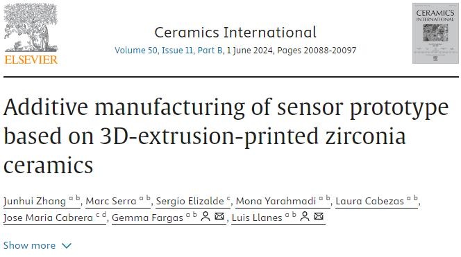 加泰羅尼亞理工大學在《Ceramics International》發(fā)表了題為《Additive manufacturing of sensor prototype based on 3D-extrusion-printed zirconia ceramics》的研究,采用了DIW墨水直寫陶瓷3D打印機來制備不同方向纖維取向的氧化鋯樣品,并通過銀導電墨水在樣品表面形成傳感器。