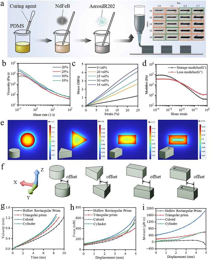 磁性墨水的流變特性和結(jié)構(gòu)優(yōu)化是實(shí)現(xiàn)高精度制造和高效儲存磁能的關(guān)鍵基礎(chǔ)。通過系統(tǒng)研究NdFeB顆粒體積分?jǐn)?shù)(20-35%)對墨水性能的影響,揭示了墨水的剪切變稀行為與其可打印性之間的關(guān)系。