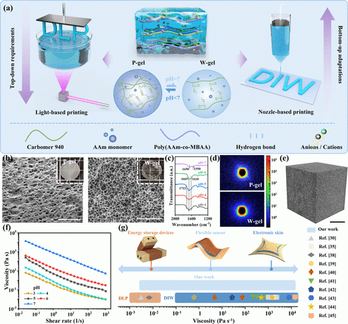 核心問題:DLP和DIW兩種主流3D打印技術(shù)對墨水性能要求存在顯著差異("語言障礙"),DLP需要低粘度、高透明度墨水,DIW則需要高粘度半固體凝膠,目前缺乏同時兼容兩種技術(shù)的水凝膠材料。