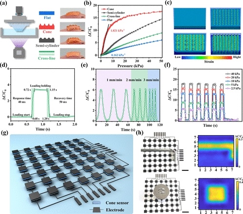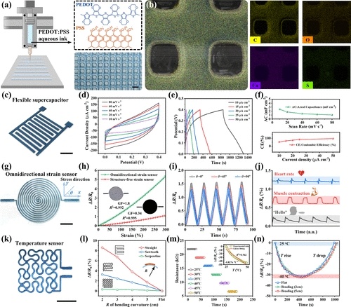 結(jié)合DIW和DLP技術(shù),成功制造兼具壓力傳感、應變傳感和溫度傳感功能的柔性集成器件,可實現(xiàn)細微觸摸、手腕彎曲和溫度變化的多維度檢測。