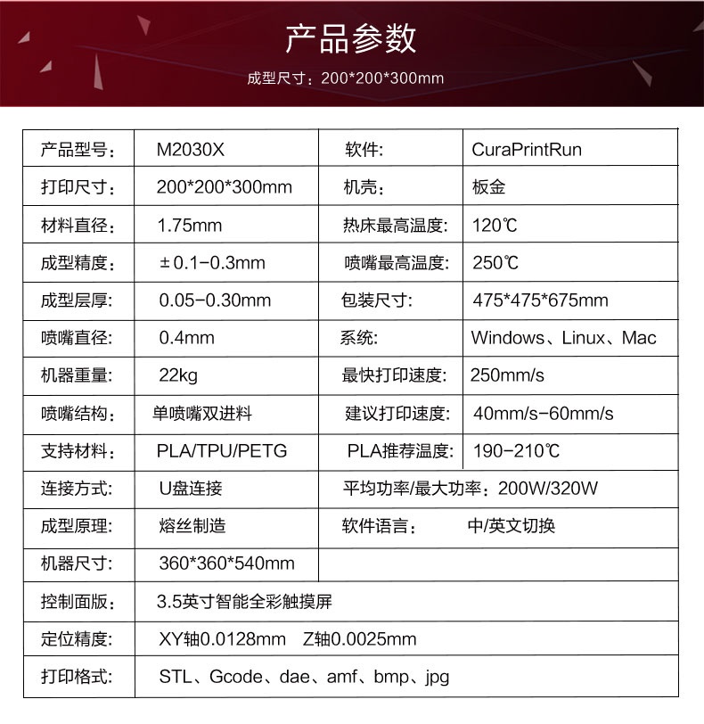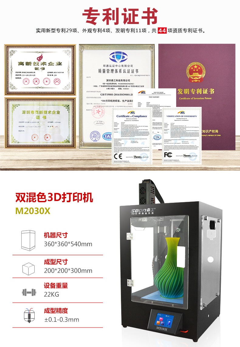 M2030X混色3d打印機(jī) 打印尺寸200*200*300mm