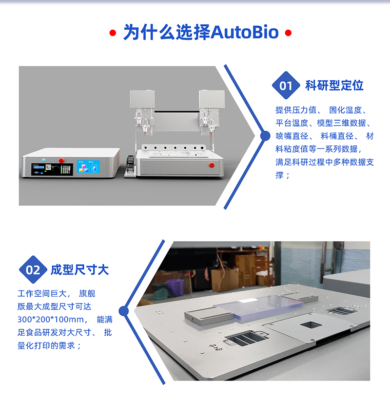 食品3D打印機(jī)-森工科技Autobio系列DIW墨水直寫3D打印機(jī)用于食品科研的優(yōu)勢。