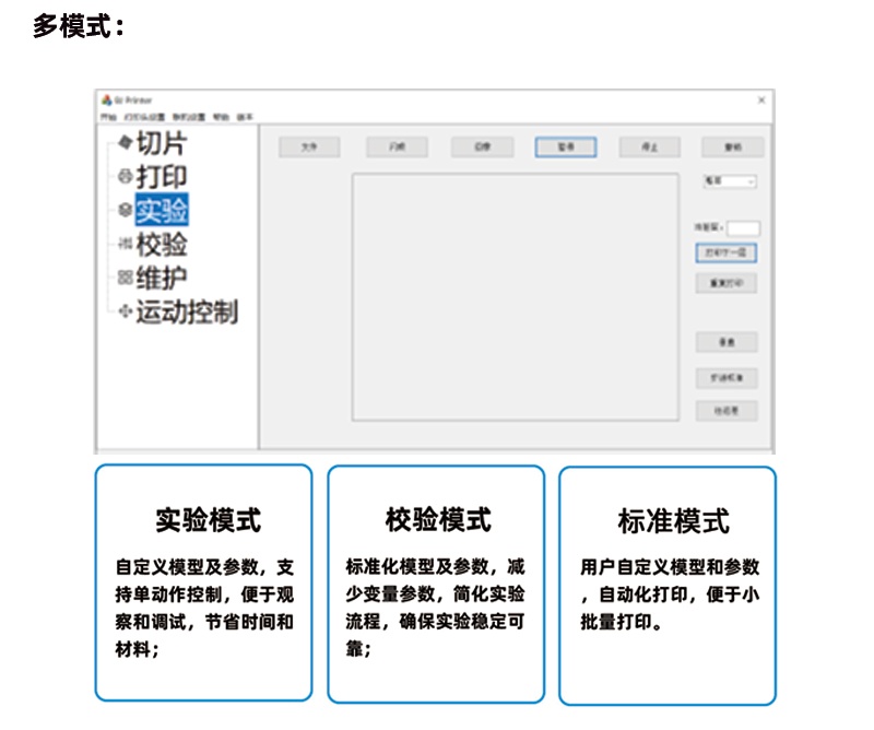 標準模式:用戶自定義模型和參數(shù),自動化打印,便于小批量打印。