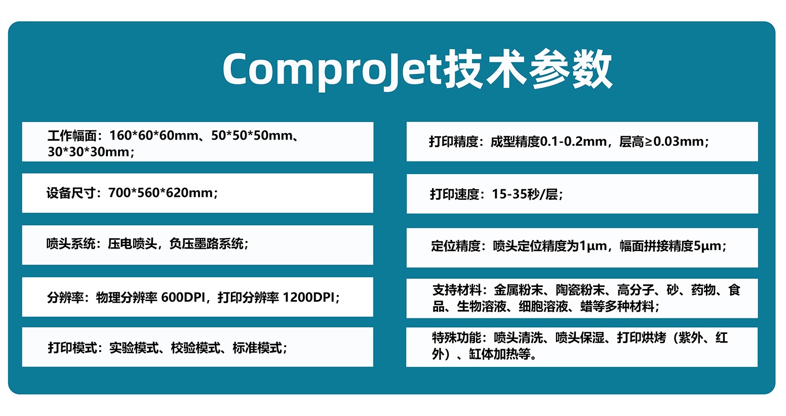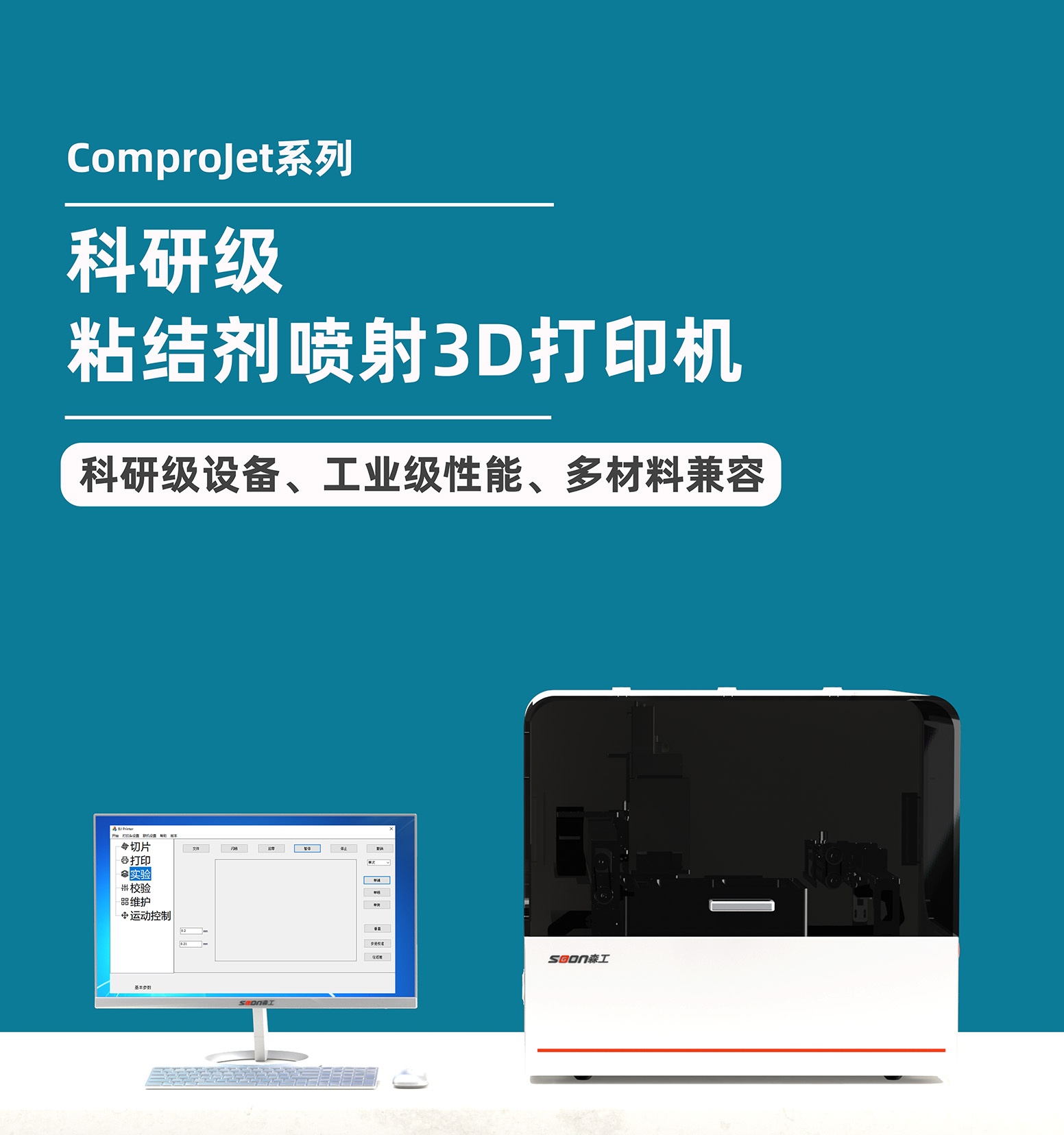 森工科技ComproJet系列BJ粘結(jié)劑噴射3D打印機(jī),科研級定位,具備桌面級尺寸和工業(yè)級性能,滿足實驗室空間限制與高性能需求。設(shè)備具有高精度、多參數(shù)、數(shù)字化、多模式、可拓展、多材料、多尺寸、高性價比等優(yōu)點。設(shè)備兼容金屬、陶瓷、高分子、砂、藥物、食品、生物溶液、細(xì)胞溶液、蠟等多種材料,能夠滿足復(fù)雜科研實驗需求。